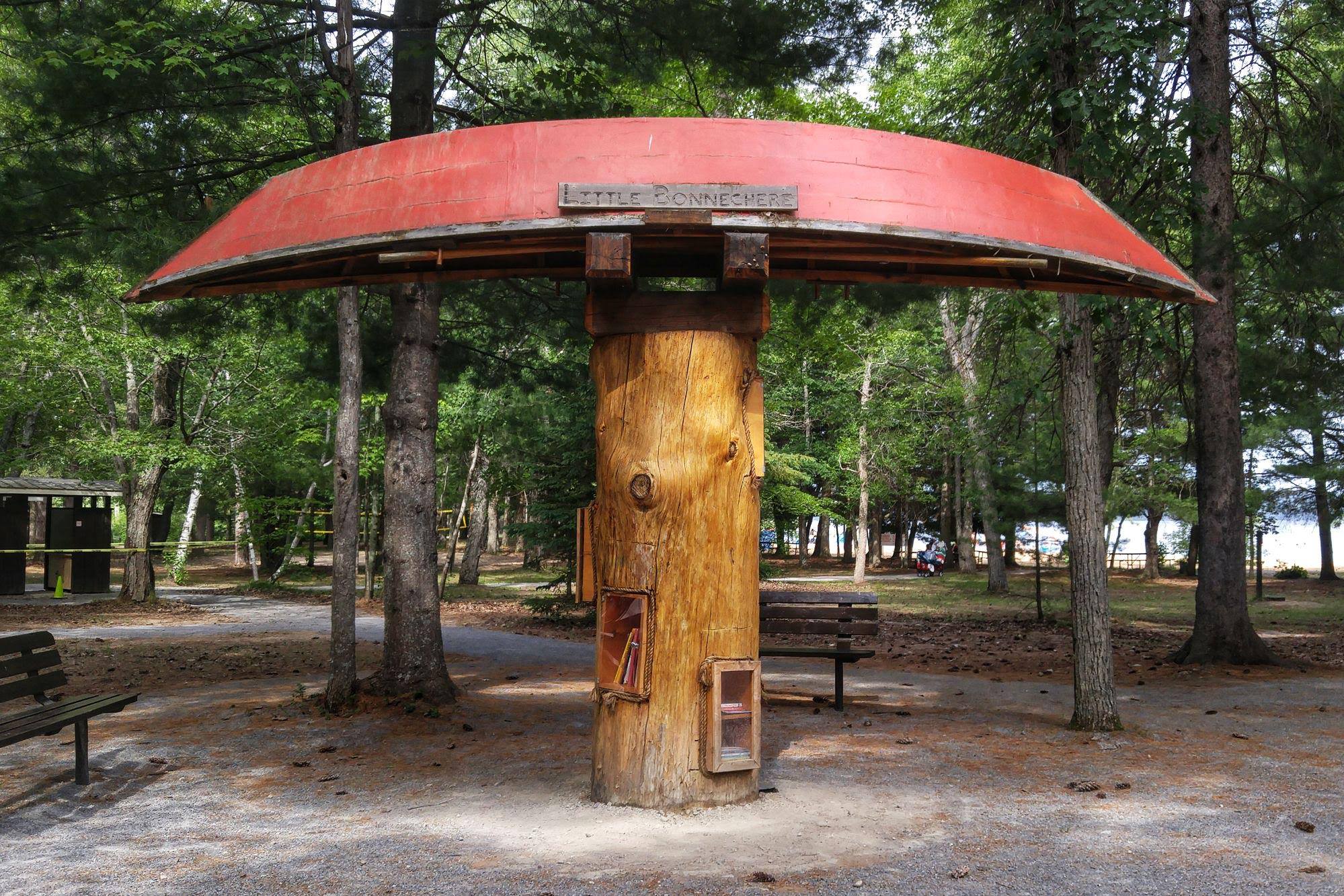 Another neat park feature is the “book tree” outside the park store near the beach. It’s like a little outdoor open library and the windows and shelves are at the height of the intended reading level – my kids loved it and enjoyed taking the books out (they were returned as well).