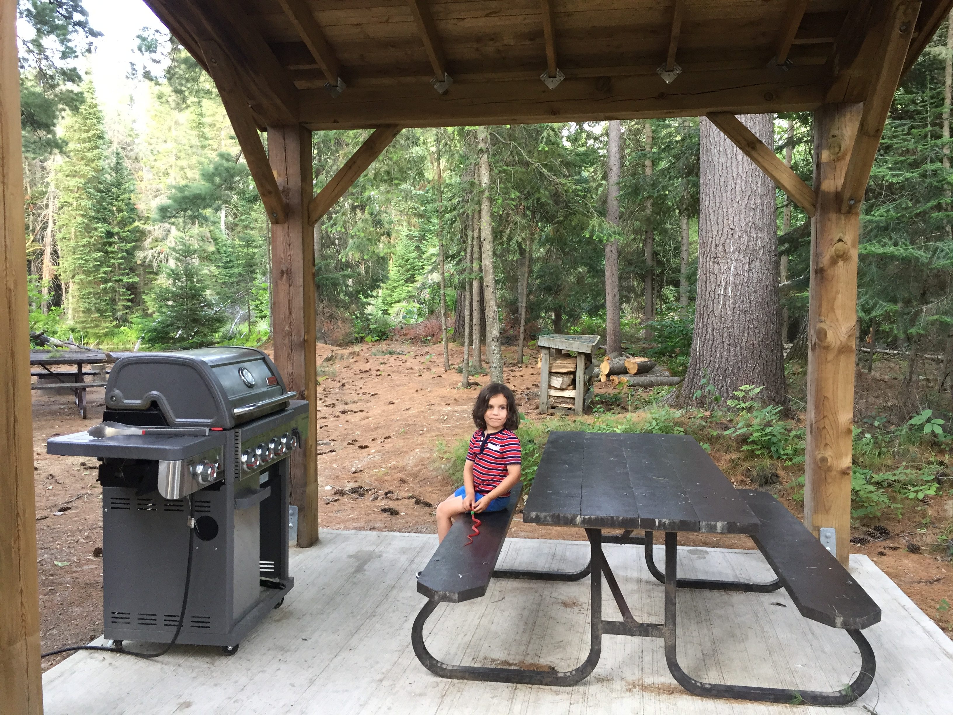 Firewood comes with the cabin, but unfortunately there was a fire ban during our stay so no fires and s’mores for us this time. Due to the fire ban, the BBQ got used a lot, we were really happy to have it. We had brought a propane stove too just in case, so we were not lacking any cooking options.