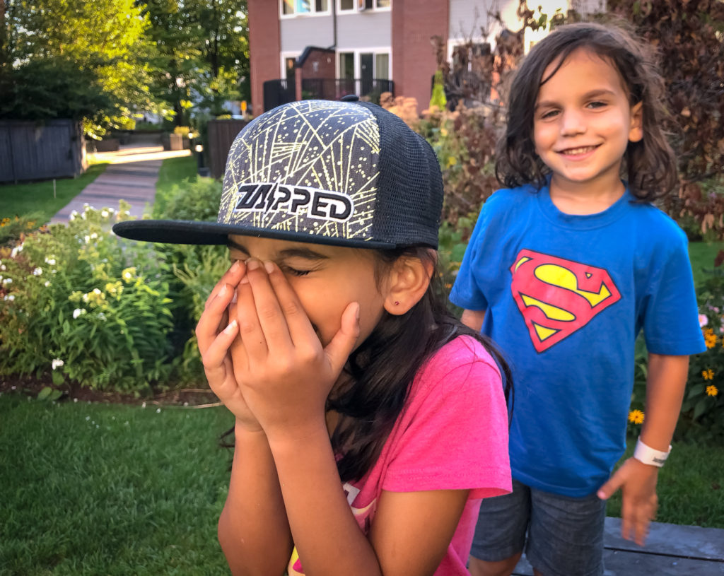 But heads up Moms – before we order the vodka, red bull and sit down with our iPads to get some of these fancy high visibility shoes, hats, backpacks and jackets… and glow sticks… I have to tell you, these are just for kids. There will be no rave in my garage for the neighbourhood Moms. Well, there won’t be one with us wearing our kid’s Zapped Outfitter outerwear at least.